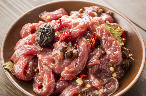瘦肉、肥膘、水、特斯特復配水分保持劑、食鹽充分攪拌至粘性